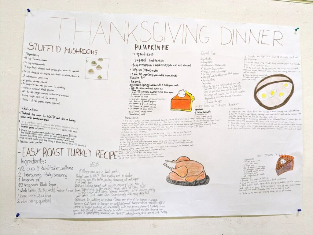 Američki dan zahvalnosti obilježava se četvrtog četvrtka u studenom. Ta tradicija datira još od doseljenika koji su 1620. do novog kontinenta doplovili brodom Mayflower i pomogli u osnivanju kolonije Plymouth na području današnjeg Massachusettsa. Obitelj i prijatelji se okupljaju na velikoj svečanoj večeri kojom proslave taj dan. U nastavku pogledajte dva menija koja su naši učenici sastavili te na čemu su oni zahvalni.